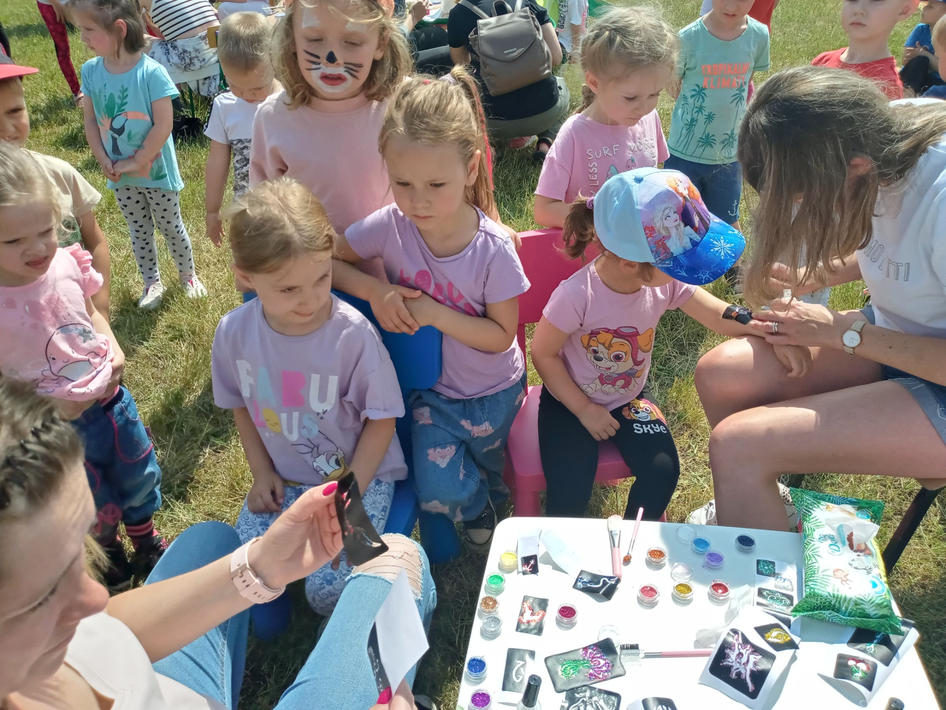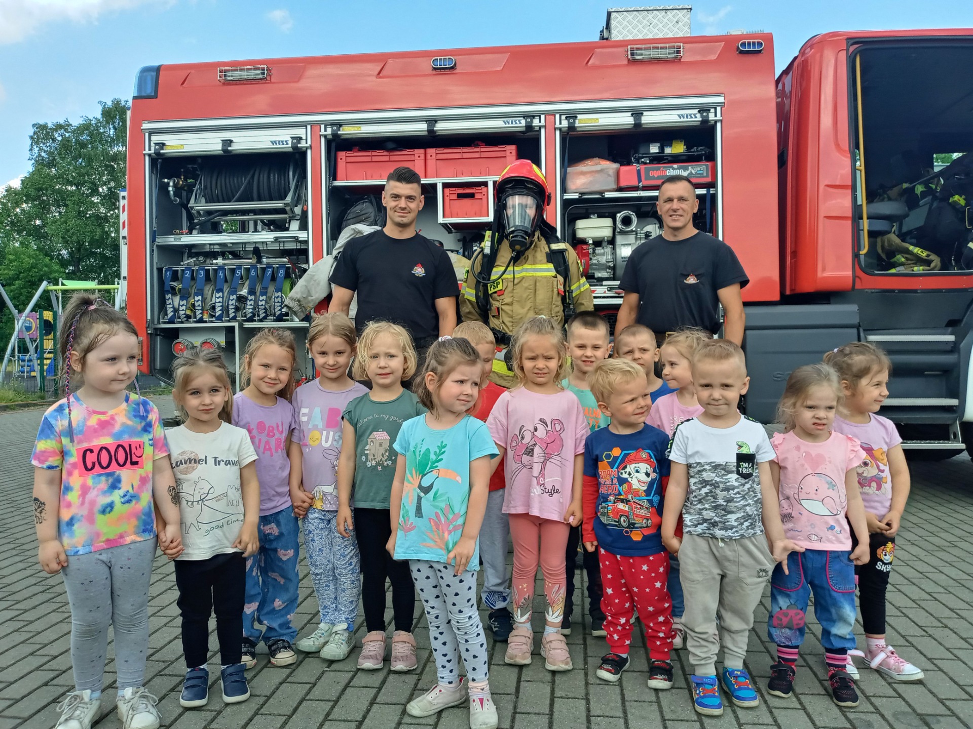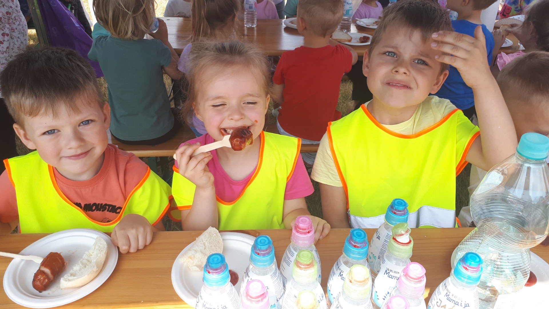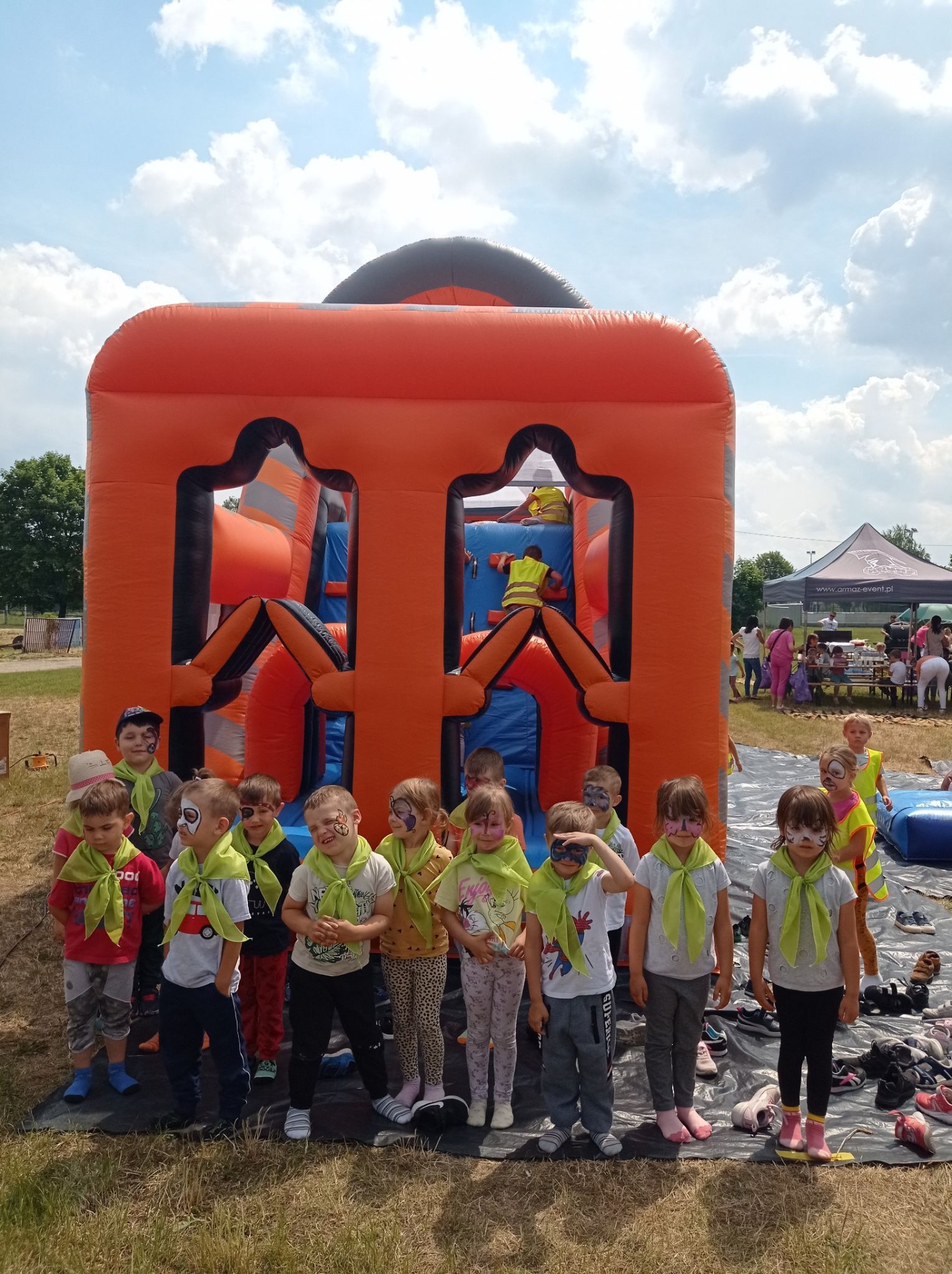 Data 16 czerwca 2023 roku na długo pozostanie w pamięci przedszkolaków. Był to dzień pełen wrażeń, śmiechu i wspaniałych niespodzianek. Nasze dzieci nie tylko bawiły się na dmuchańcach, malowały buzie, robiły tatuaże ale również tańczyły na muzycznym koncercie pt. : "Achoj przygodo". Rodzice przygotowali smaczny poczęstunek aby małym odkrywcom nie zabrakło sił do zabawy. Honorowymi Gośćmi uroczystości byli strażacy i policjanci, dzięki którym dzieci mogły przypomnieć sobie podstawowe zasady bezpieczeństwa obowiązujące w domu oraz podczas wakacyjnych zabaw.