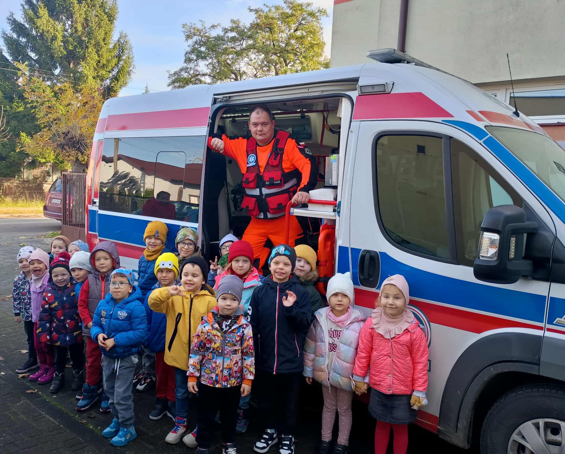 W czwartek, 23 października 2025 roku, grupę Stokrotki i grupę Biedronki z Przedszkola nr 3 w Koluszkach im. Czesława Janczarskiego odwiedził ratownik medyczny –                Pan Krzysztof Karliński z EMS CENTER w Justynowie. Celem spotkania było przybliżenie dzieciom zasad udzielania pierwszej pomocy oraz pokazanie, jak należy zachować się                                      w sytuacjach zagrożenia zdrowia lub życia.