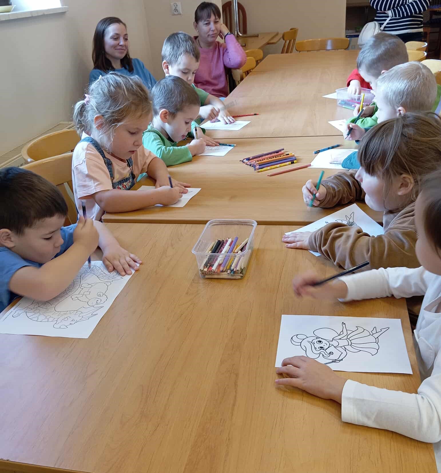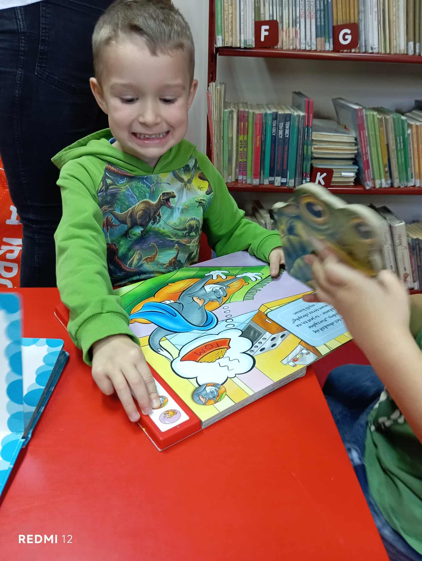 Po przybyciu na miejsce przywitała nas pani bibliotekarka, która opowiedziała dzieciom, czym zajmuje się biblioteka i jak należy się w niej zachowywać. Pokazała nam również różne działy biblioteki oraz kolorowy kącik dla najmłodszych. Dzieci z zachwytem oglądały bajki, książeczki z okienkami i pięknie ilustrowane opowieści o zwierzętach.