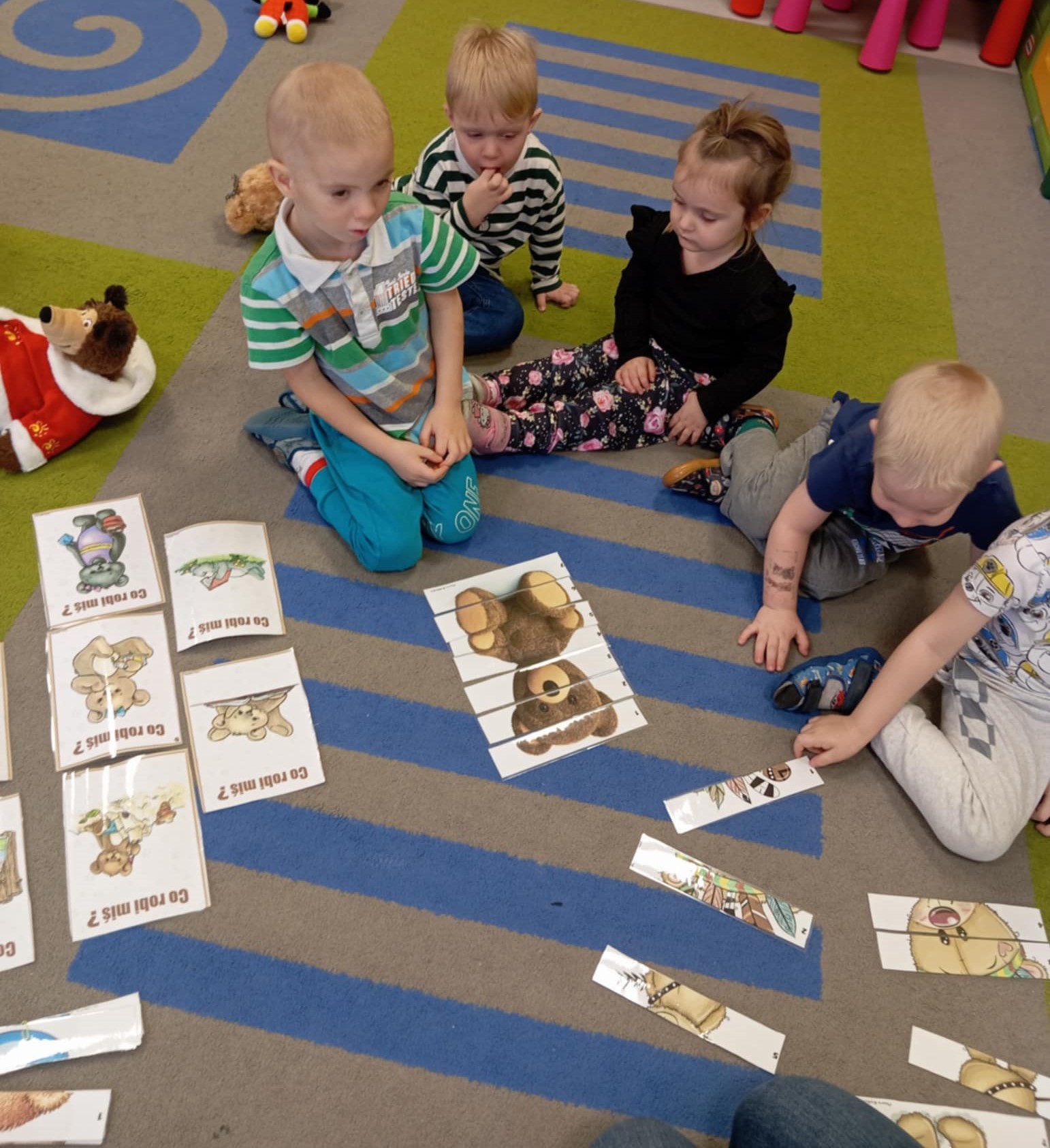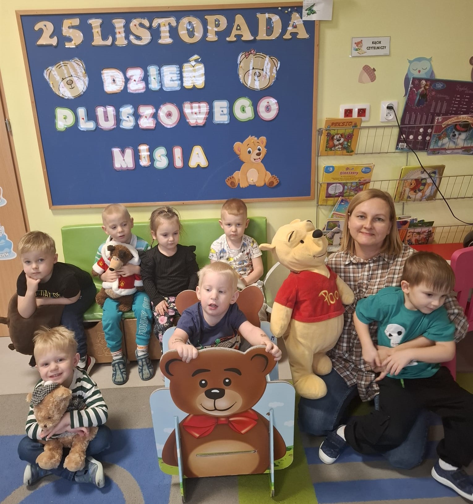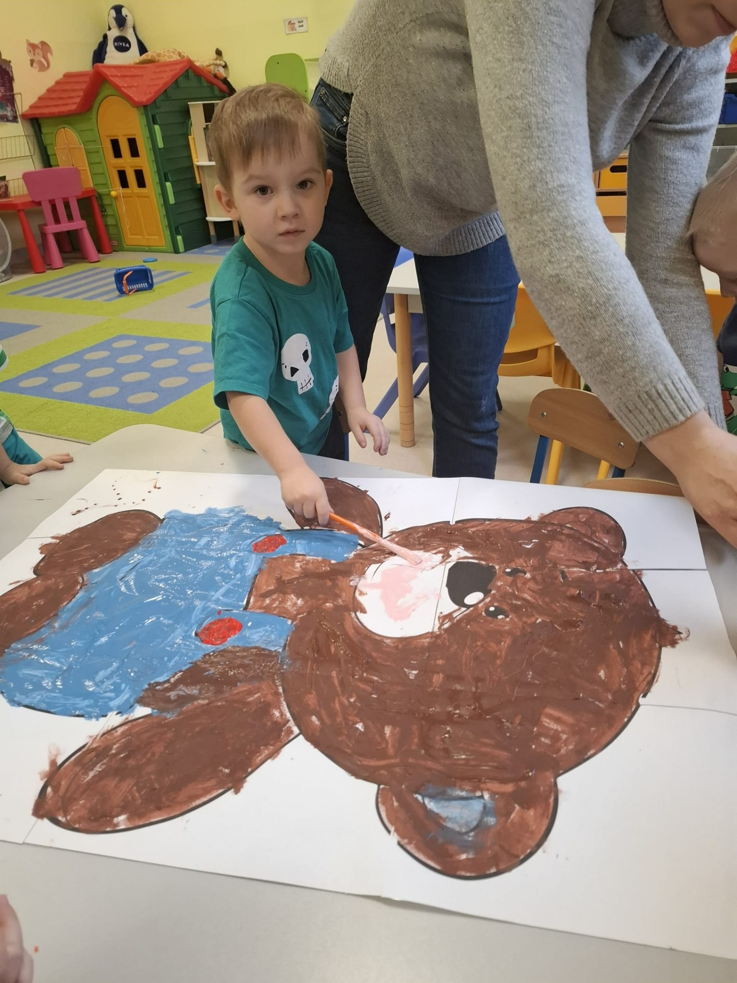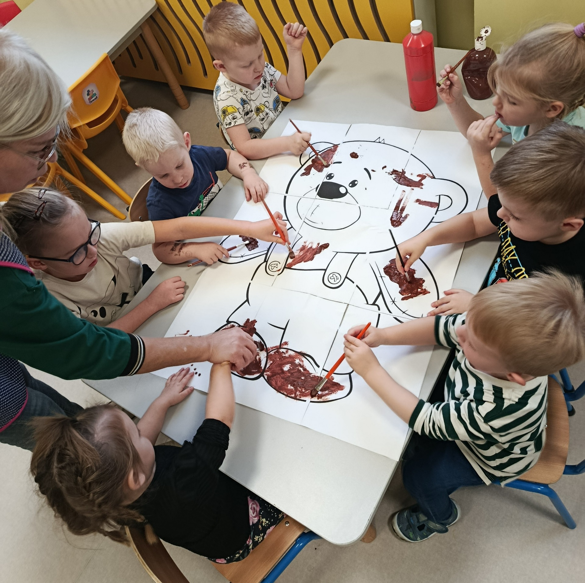 25 listopada swoje święto obchodzi najlepszy przyjaciel dzieci i najmilsza przytulanka przy zasypianiu- Pluszowy Miś. W naszej grupie tego dnia poznawaliśmy misie z różnych bajek, opowiadaliśmy o swoim Pluszowym Przyjacielu. Przedszkolaki z tej okazji wykonały pracę plastyczne: malowały farbami i wyklejały z kółek pluszowego misia. Z wielkim zaangażowaniem układały misiowe puzzle.