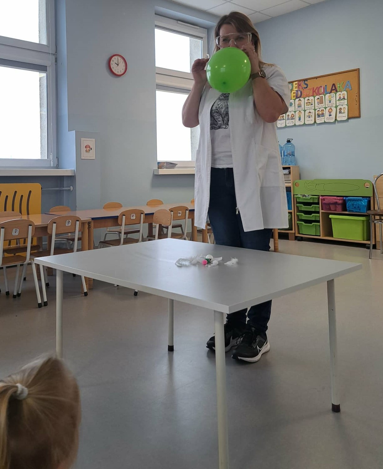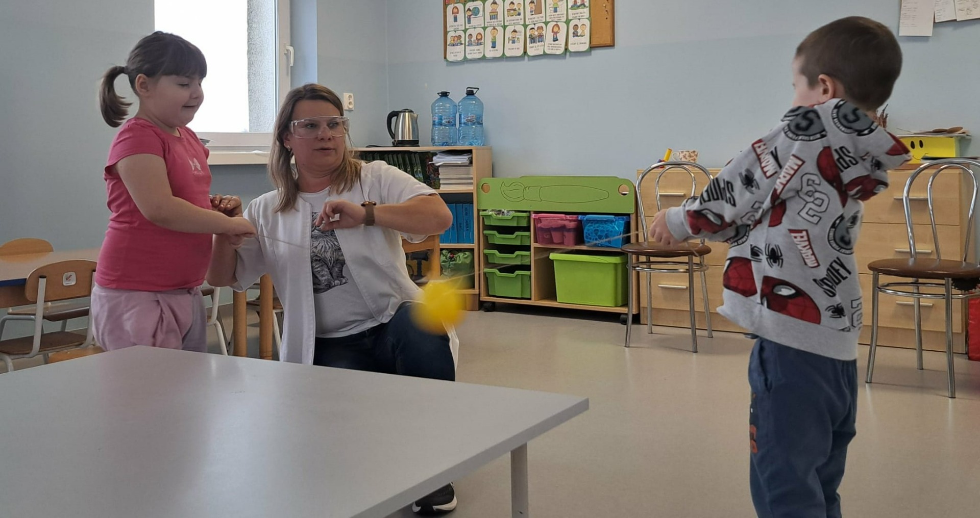 Biedronki uczestniczyły w pierwszym cyklu zajęć w ramach innowacji pedagogicznej. Tematem spotkania było odkrywanie właściwości powietrza. Eksperymenty pozwoliły dzieciom zrozumieć, że choć powietrze jest niewidzialne, ma swoje właściwości i wpływa na różne zjawiska wokół nas. Doświadczenia były nie tylko atrakcyjne, ale także rozwijające — zachęcały do myślenia, przewidywania i samodzielnego testowania pomysłów.