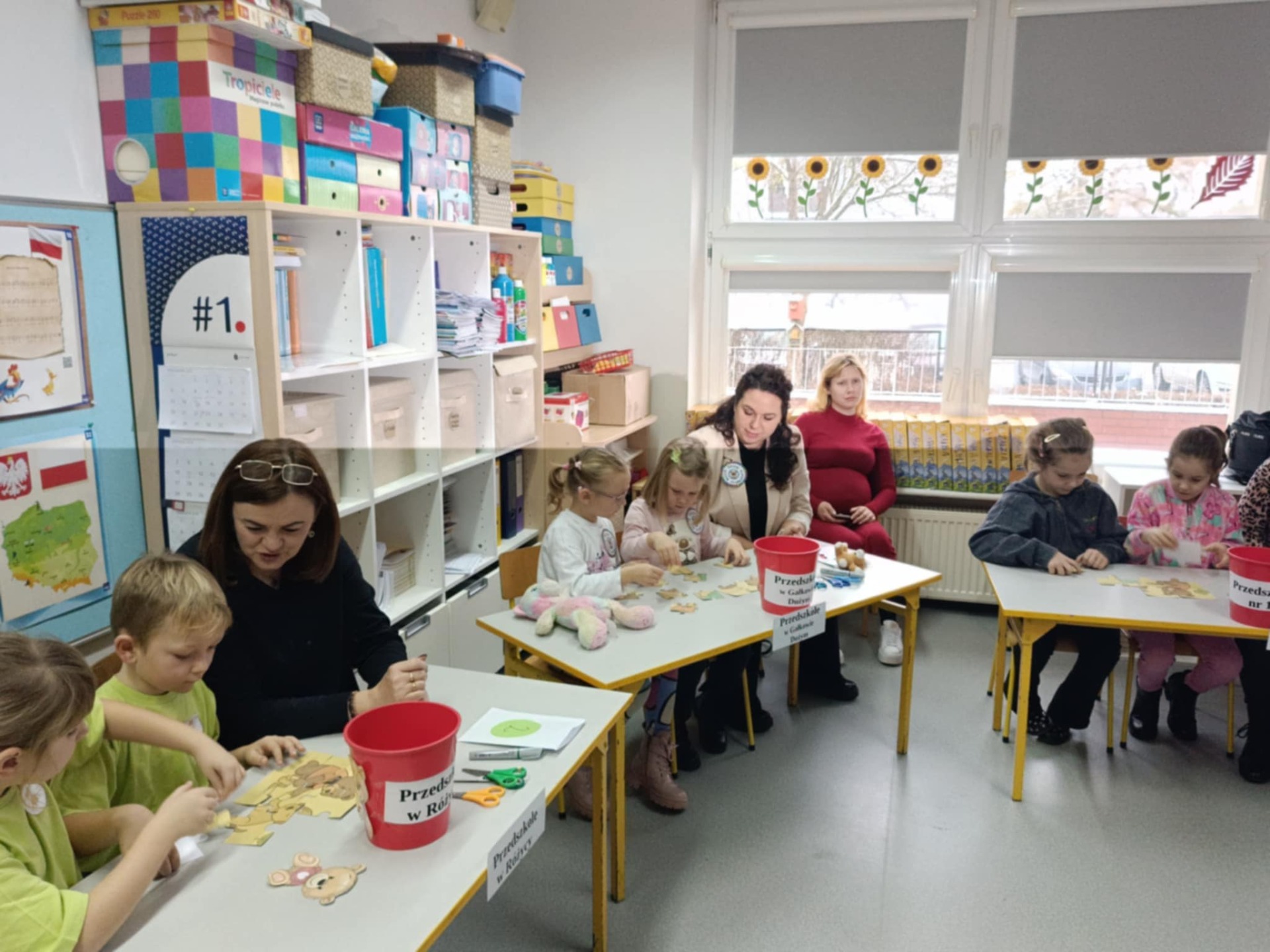 - Układanie puzzli z ideą pomocy – dzieci dopasowywały fragmenty obrazka przedstawiającego różne sposoby niesienia wsparcia innym.