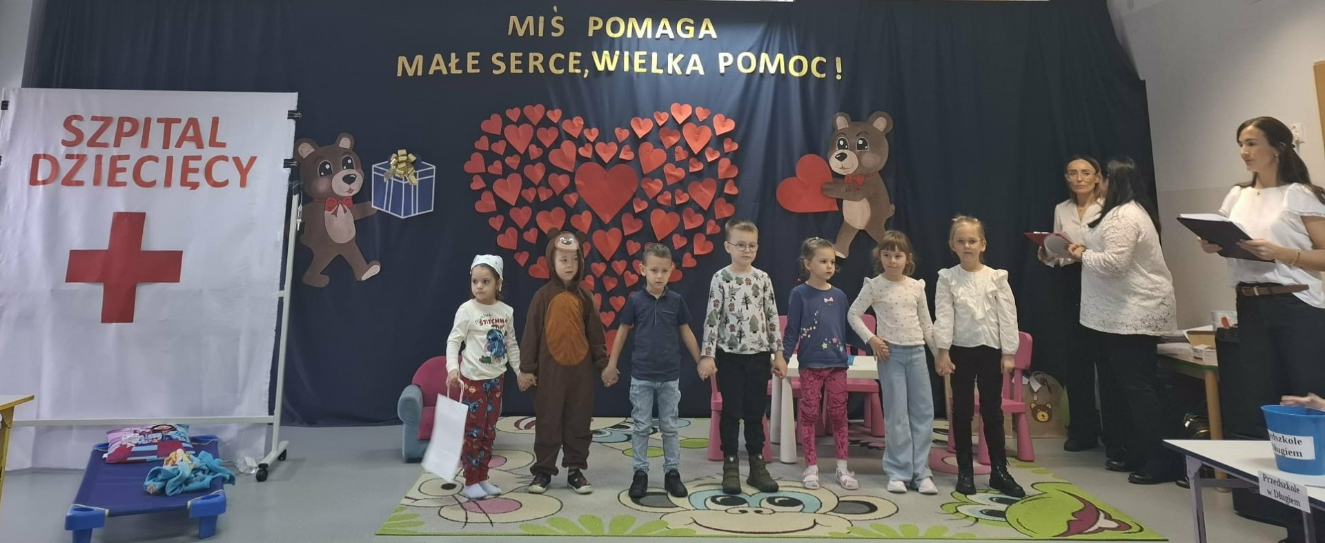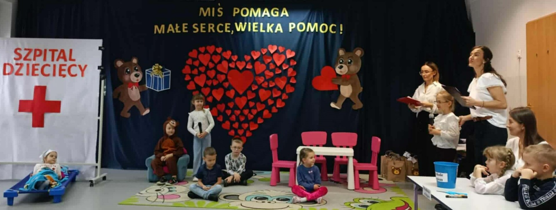 Jednym z najpiękniejszych momentów wydarzenia było przedstawienie przygotowane przez dzieci z grupy „Stokrotki”. Widzowie obejrzeli historię misia Bruno, który z przedszkolnej półki trafił do szpitala, by zostać przyjacielem chorej dziewczynki. Przedszkolaki odegrały role z ogromną wrażliwością, a opowieść o przyjaźni, dobroci i dzieleniu się wywołała poruszenie wśród publiczności. Finał historii, w którym miś pomagał, pocieszał i dodawał otuchy, idealnie wpisał się w przesłanie całej akcji.