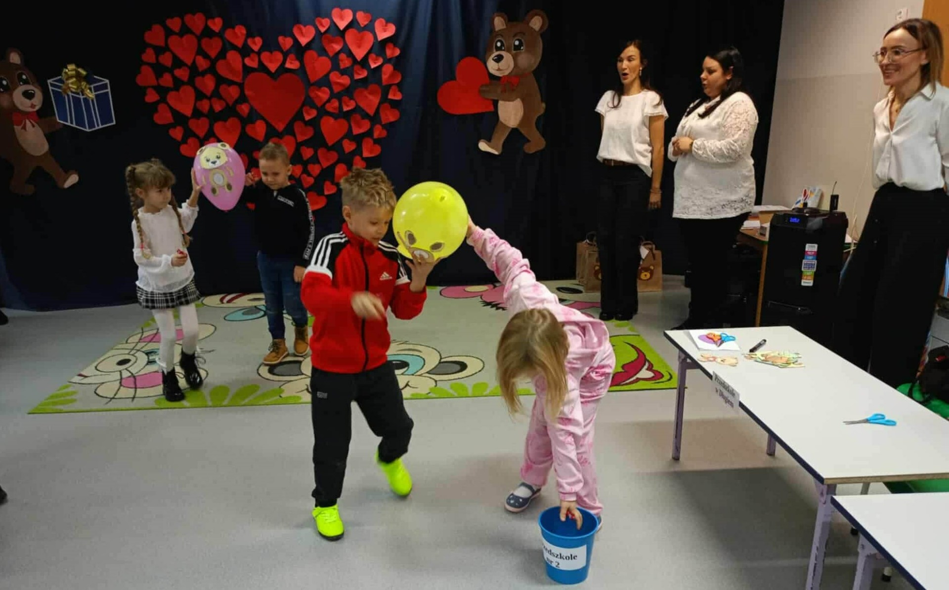 Po części artystycznej przedszkolaki przystąpiły do konkursów, które zamiast rywalizacji akcentowały współpracę, kreatywność i życzliwość: