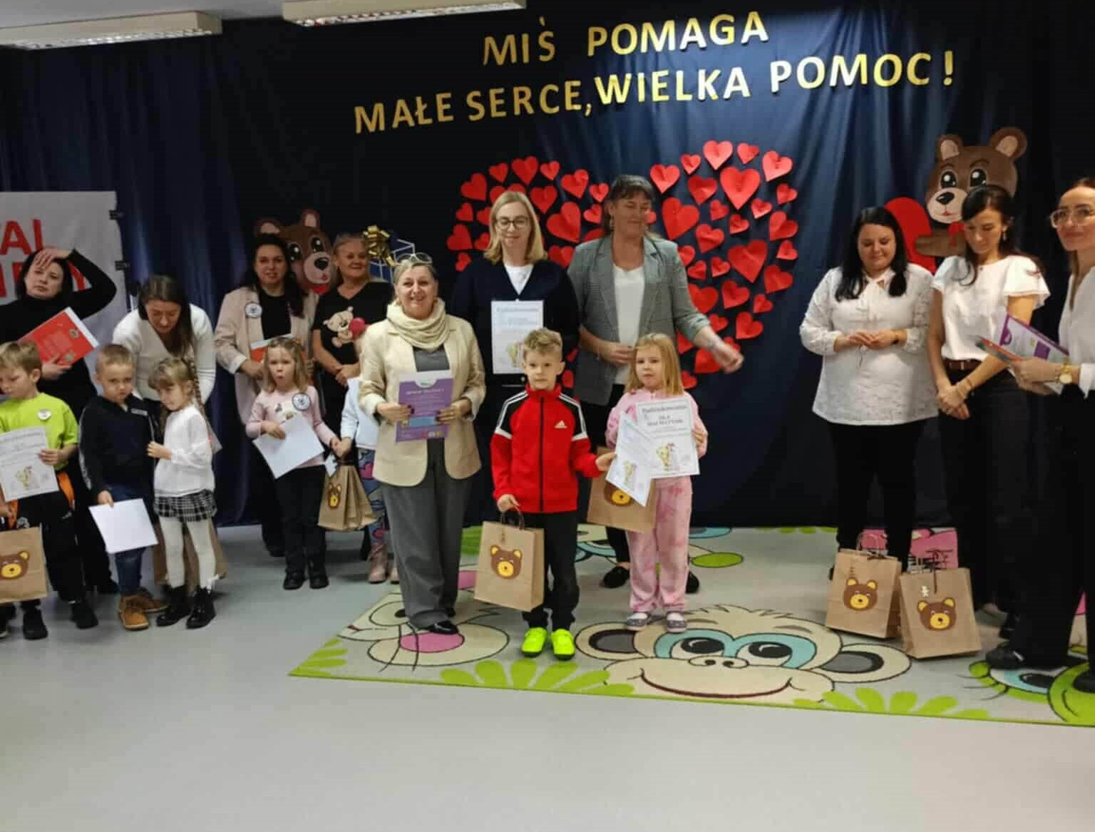 Wszystkie przedszkola włączyły się w akcję charytatywną „Misiowa Paczka Dobra”, przygotowując dary dla dzieci przebywających w szpitalach oraz wykonując niezwykłe, własnoręcznie ozdobione papierowe torby. Każda z nich była jedyna w swoim rodzaju – pełna kolorów, serc i dobrych myśli.