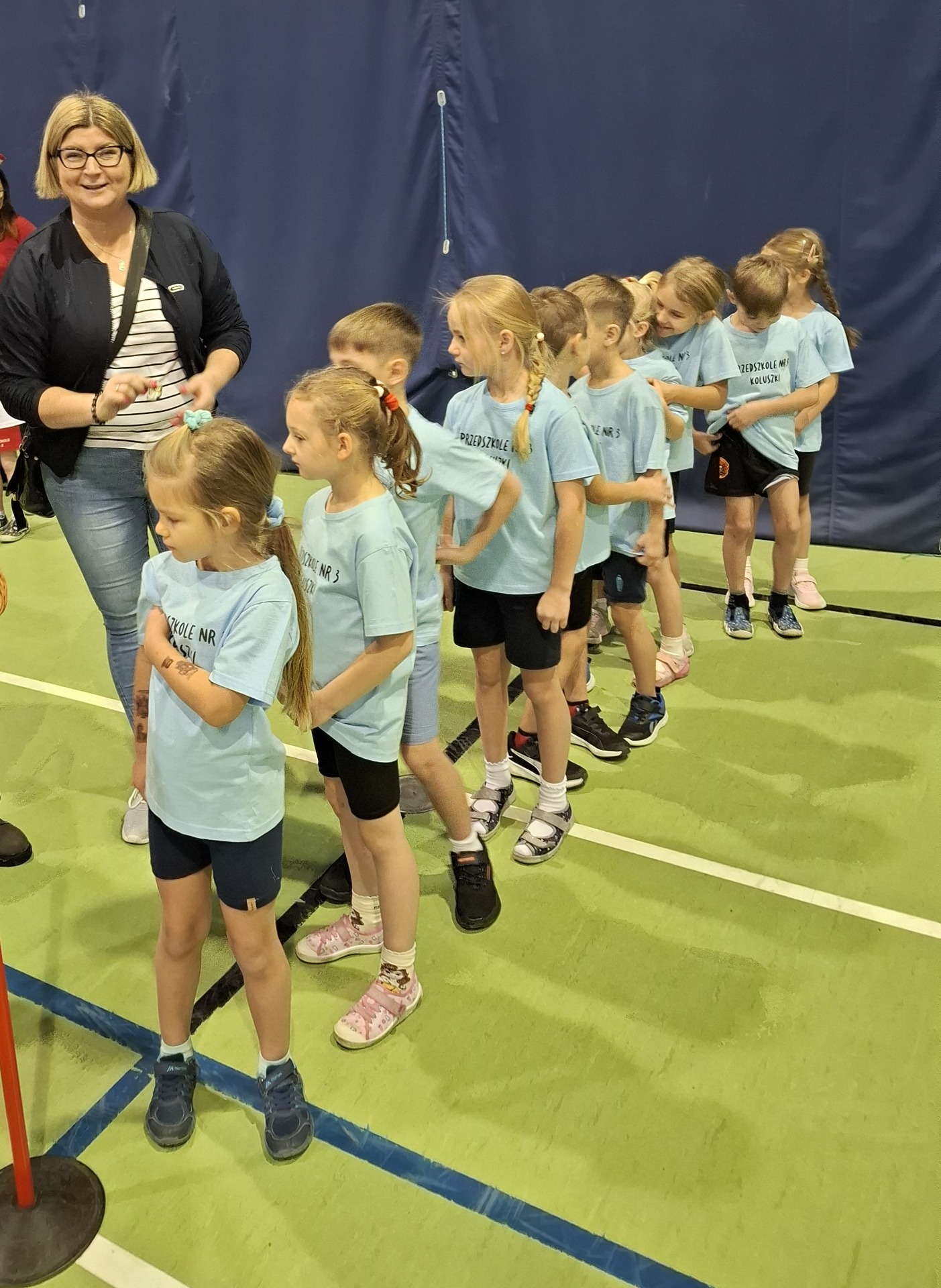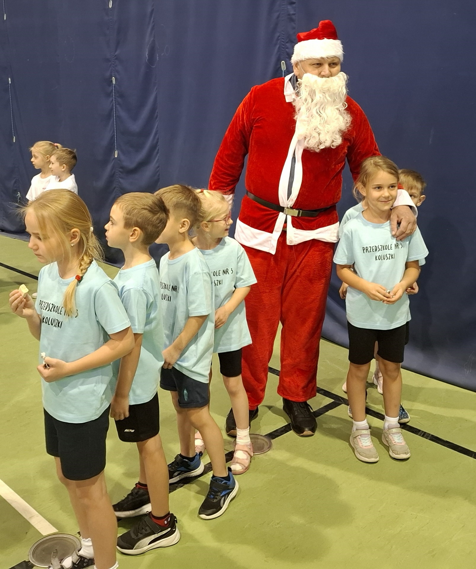 5 grudnia przedszkolaki z grupy Gwiazdki wzięły udział w Turnieju Przedszkolaka „Mikołaj na sportowo” o Puchar Burmistrza Koluszek, który odbył się w hali sportowej. Sportowa atmosfera, głośny doping i entuzjazm dzieci sprawiły, że rywalizacja przebiegała w radosnej i pełnej energii atmosferze. W trakcie zawodów przedszkolaki miały okazję nie tylko aktywnie spędzać czas, ale również uczyć się zdrowej rywalizacji, wzajemnego współdziałania, a także koleżeństwa. Każda konkurencja sprzyjała budowaniu pozytywnych relacji, wspieraniu się nawzajem i czerpaniu radości ze wspólnej zabawy. Zawody zakończyły się uroczystym wręczeniem pucharu i pamiątkowych medali oraz upominków, które wywołały wiele uśmiechów na twarzach dzieci. Dziękujemy organizatorom za wspaniałą zabawę i niezapomniane sportowe emocje.